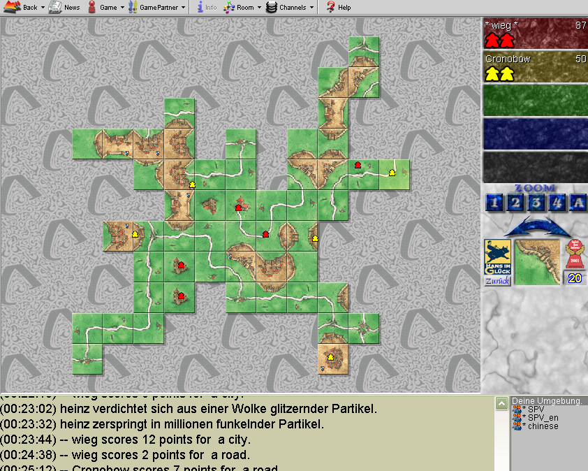 在[BrettspielWelt – 玩Board Game的利器]提到BSW最基本的操作,這篇則是要介紹怎麼上BSW來和別人玩Carcassonne。這裡是用已經套用上一篇提供的設定檔來說明。如何開新遊戲或是加入別人開好的遊戲局,請看上一篇的說明。