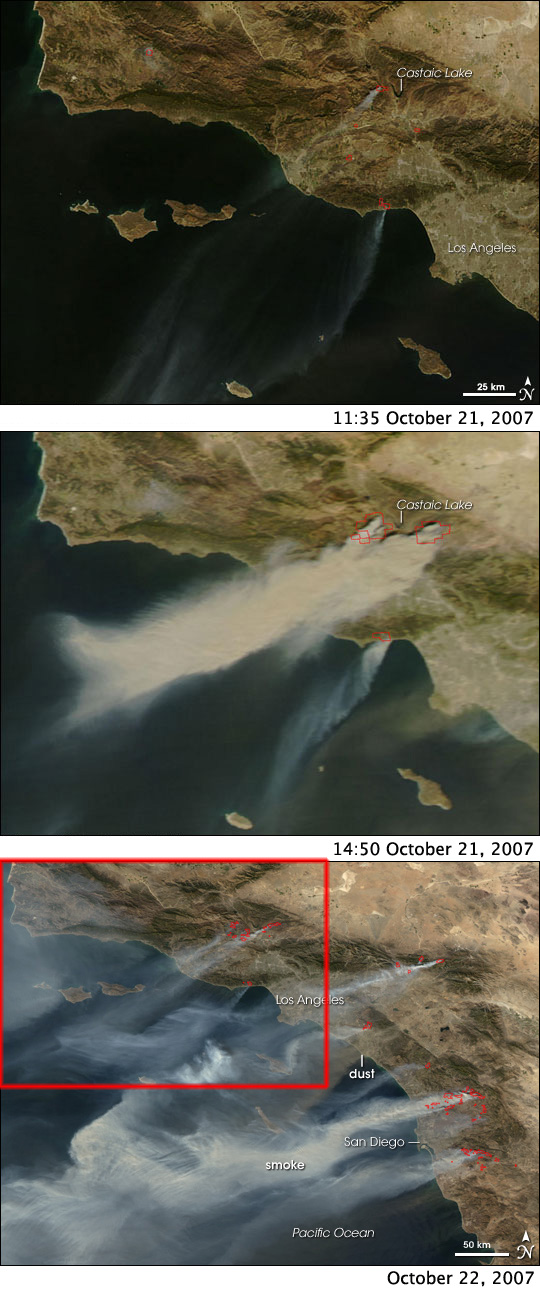 此外,2003年10月23日也曾在這一帶發生過火災。NASA提供的衛星檔案圖。