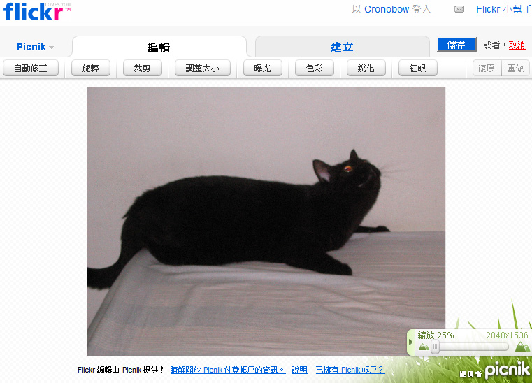 可以看到光是效果的變化就有那麼多種,不過除了基本的子項目是完全免費之外,其他子項目幾乎都是付費的項目。如果不想付費的話,就只能用影像編輯軟體修好再傳上flickr。不過這樣就失去線上編輯的意義了。